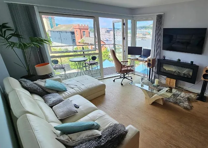 A Swansea vára 850 m-re, a Nemzeti Tengerparti Múzeum pedig mindössze 11 percnyi sétára van a 40 m²-es Luxury Marina View Apartment Swansea.